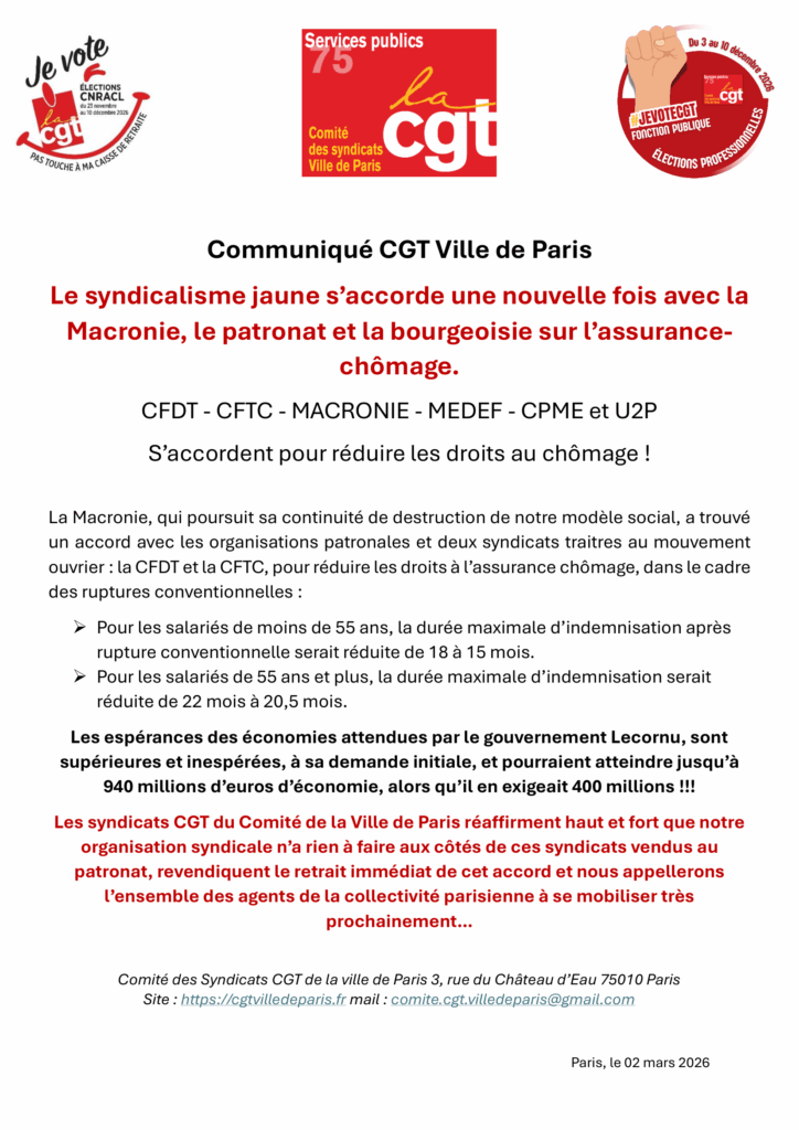- La Macronie, qui poursuit sa continuité de destruction de notre modèle social, a trouvé un accord avec les organisations patronales et deux syndicats traitres au